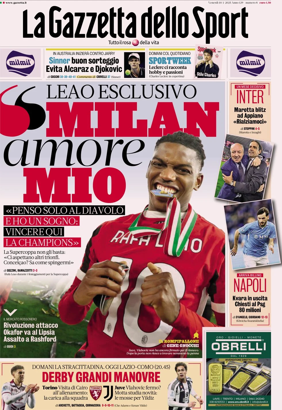 La Supercoppa ne suffit pas : « D'autres triomphes nous attendent. Conceiçao? Il sait comment me motiver'