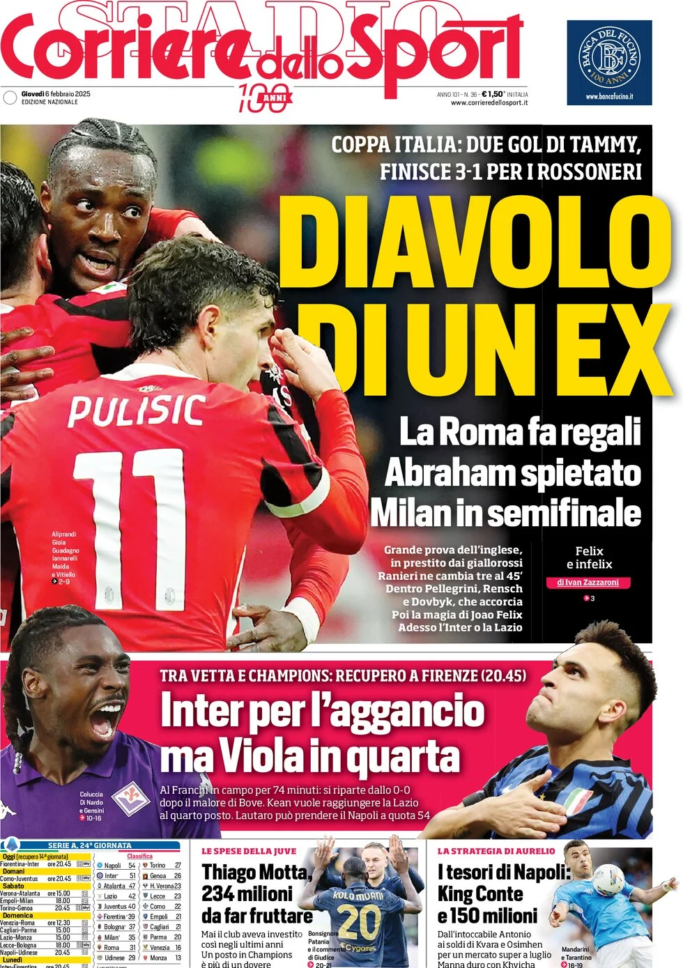 Roma fait des cadeaux, Abraham impitoyable, Milan en demi-finale