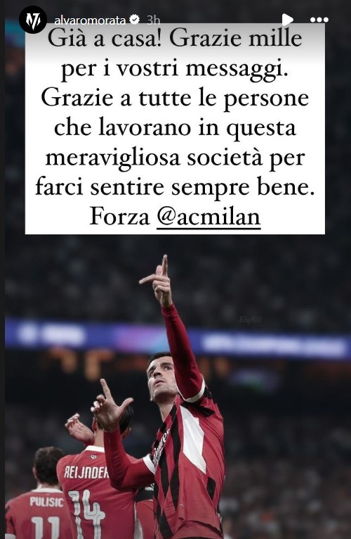 Morata partage un message Instagram pour Milan et ses fans après une alerte à une blessure