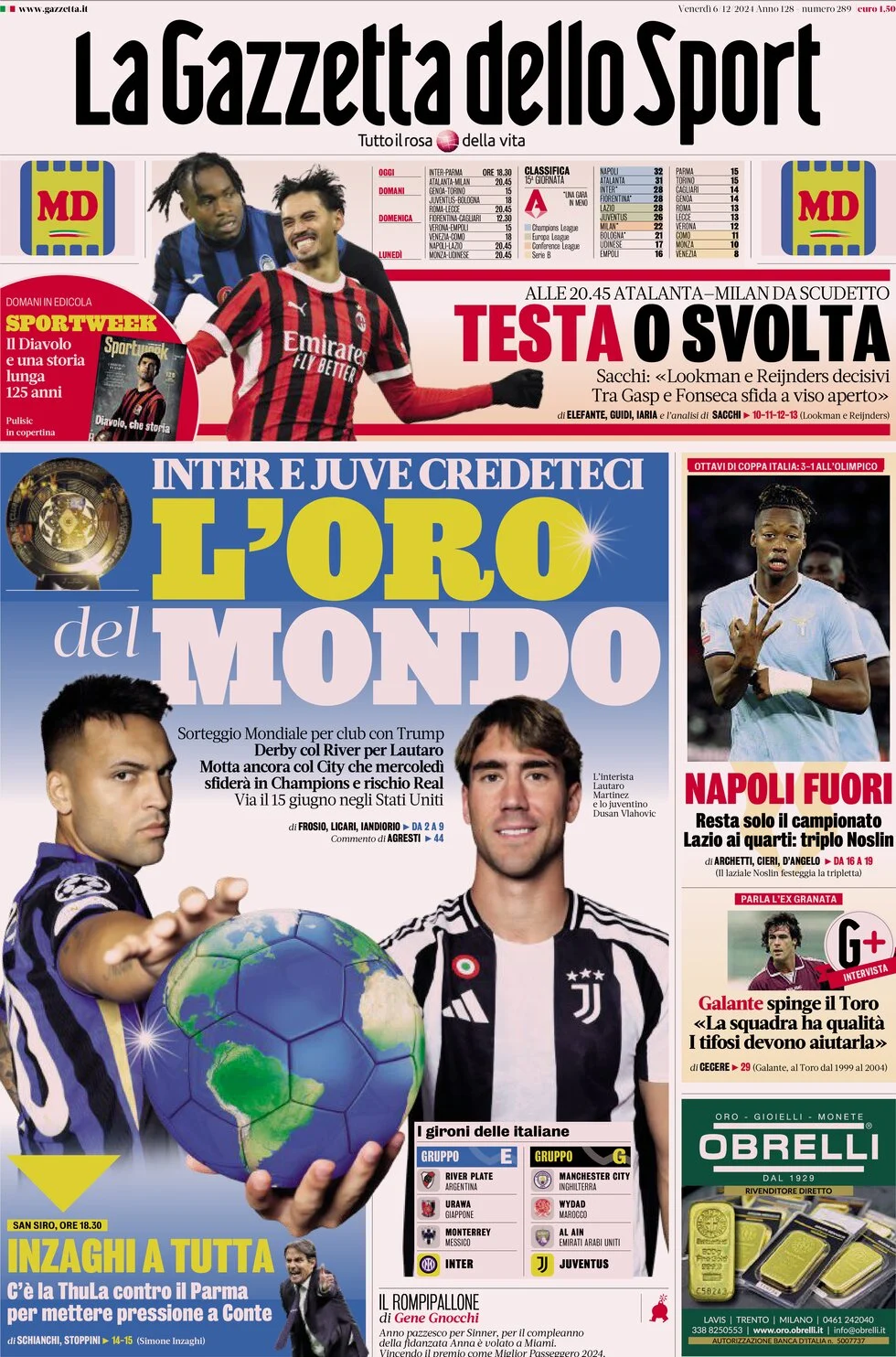 Tirage au sort de la Coupe du monde des clubs avec Trump. Derby avec River pour Lautaro, Motta avec City encore, qu'il retrouvera mercredi en Ligue des Champions, et risquer le Real. Cela commence le 15 juin aux USA.