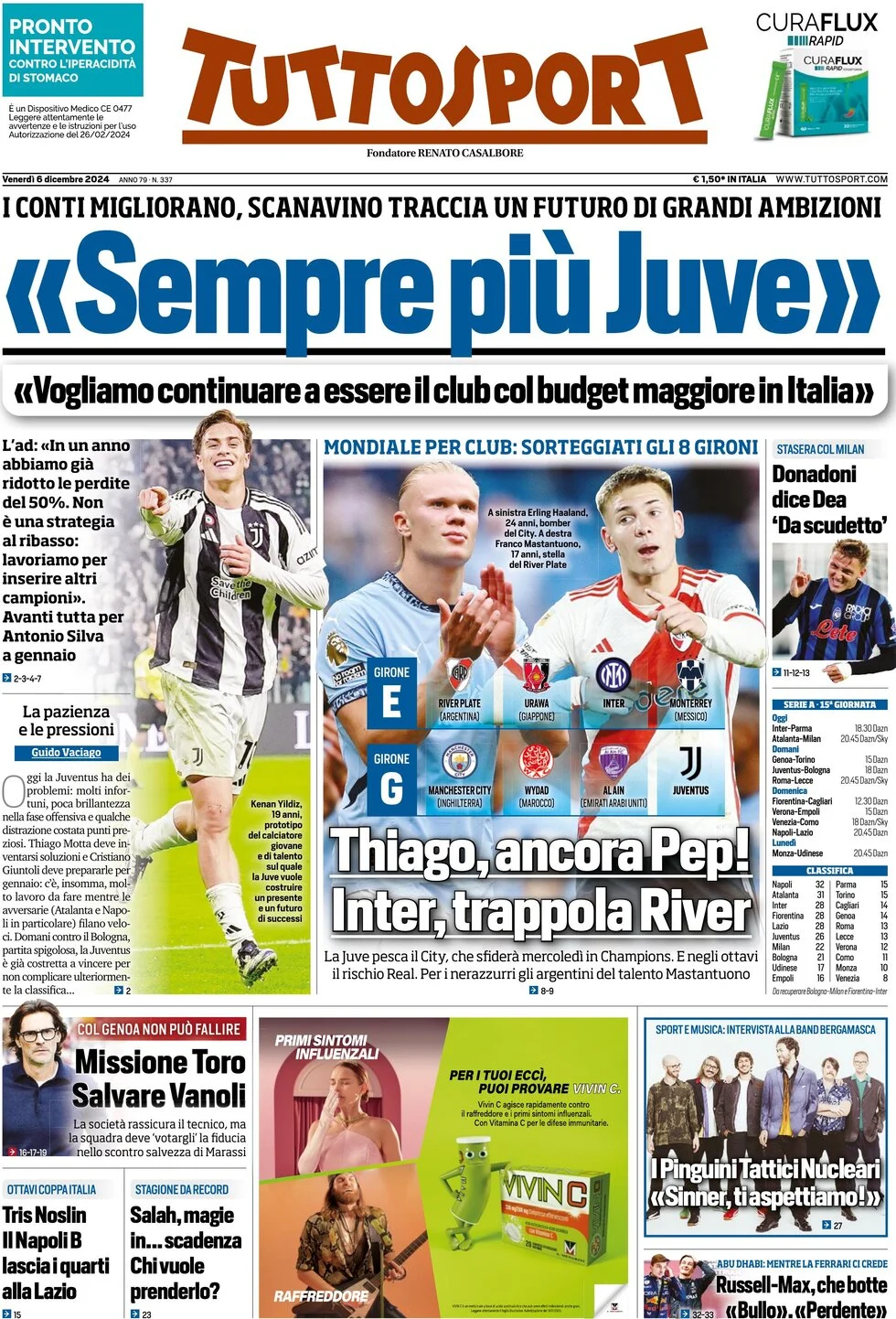 “Nous voulons continuer à être le club avec le meilleur budget d'Italie.”